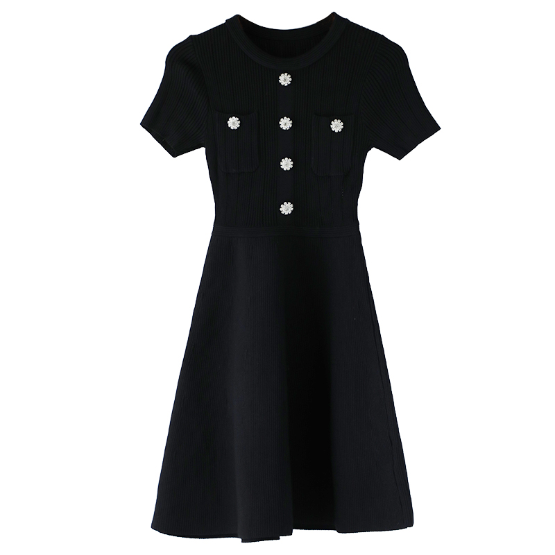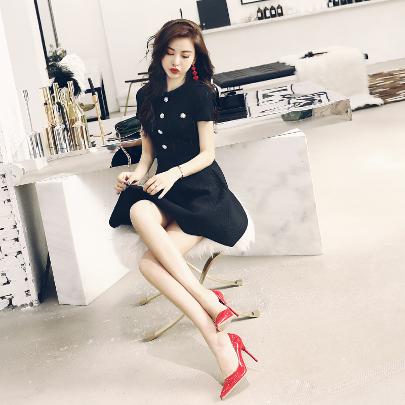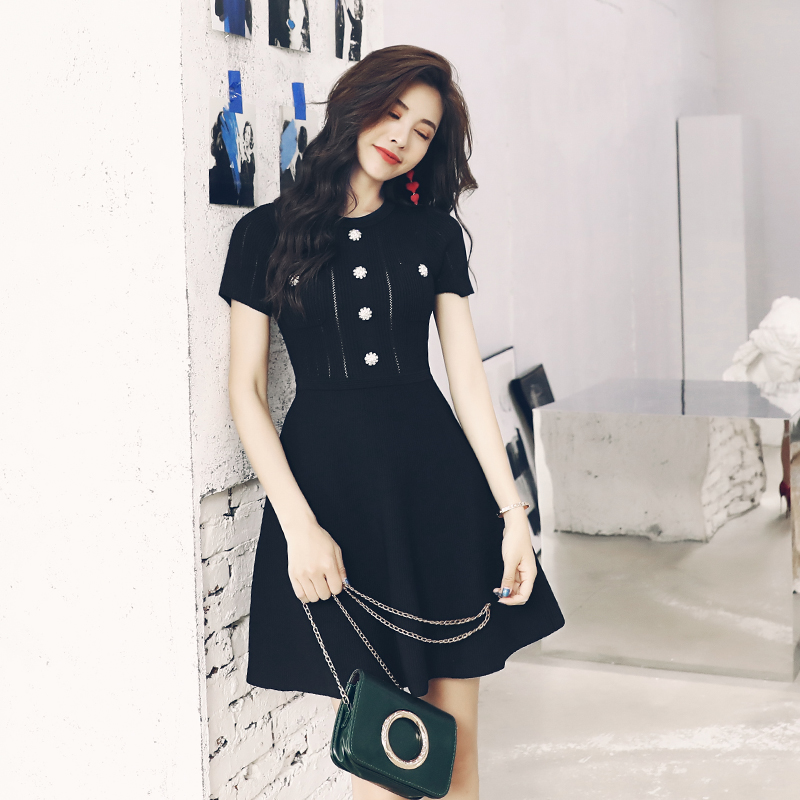/ S秀名媛淑女裙子秋裝女2018新款針織短袖高腰顯瘦連衣裙短款潮