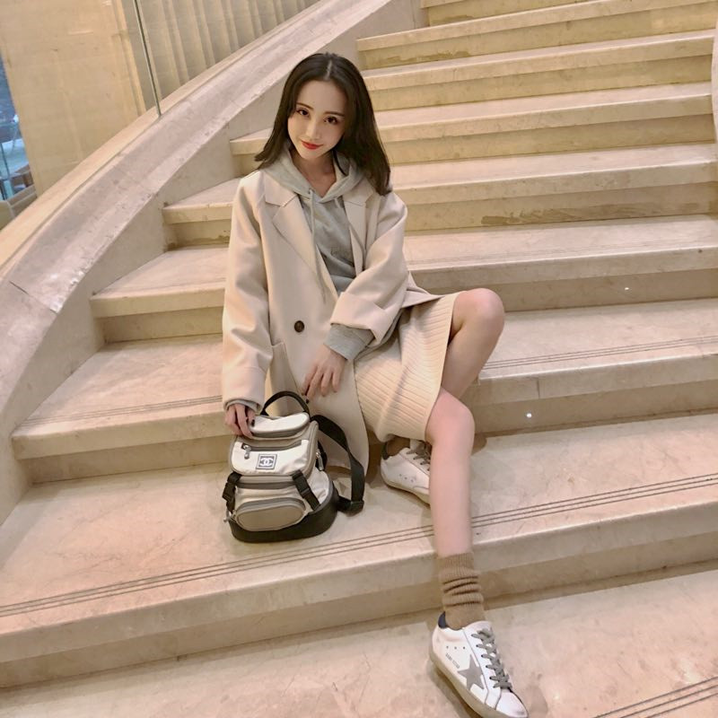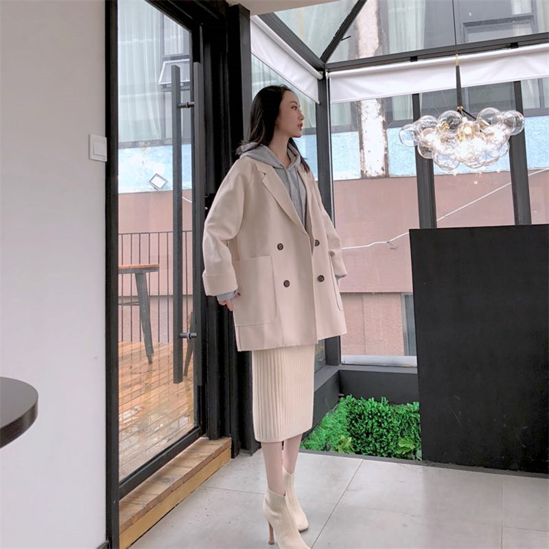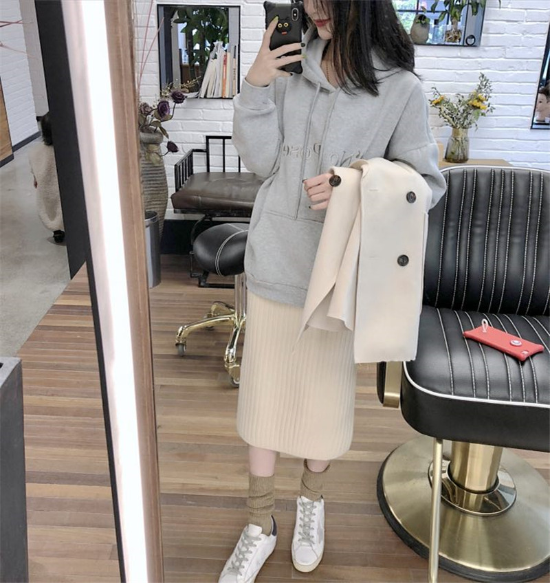 2018秋冬新款款式毛呢外套+加厚連帽衛衣+針織裙套裝