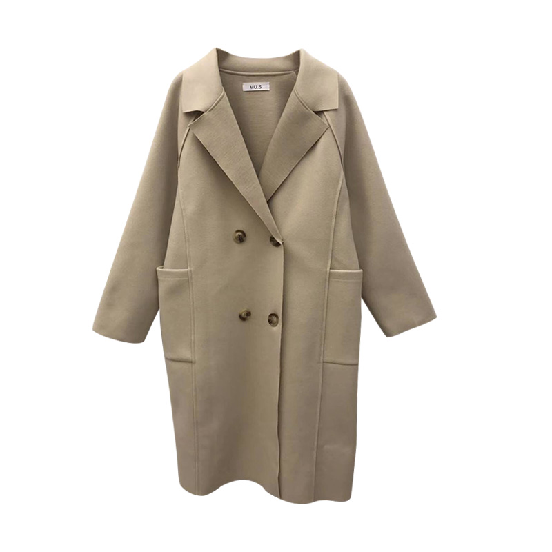 / 秋冬韓版氣質長袖毛呢外套新款時尚chic中長款過膝妮子大衣送腰帶