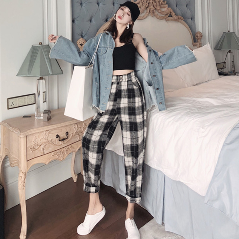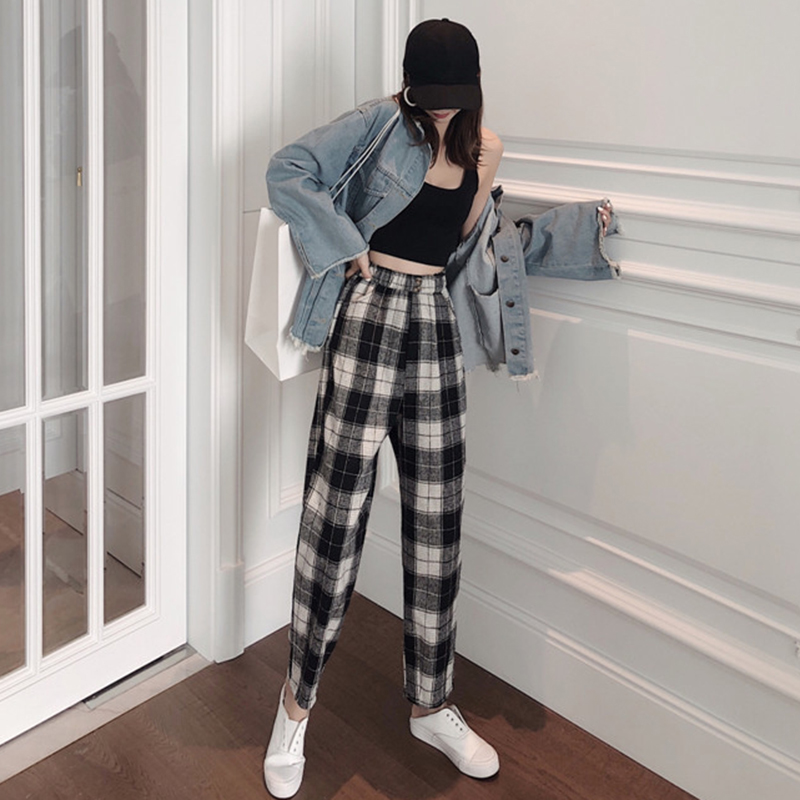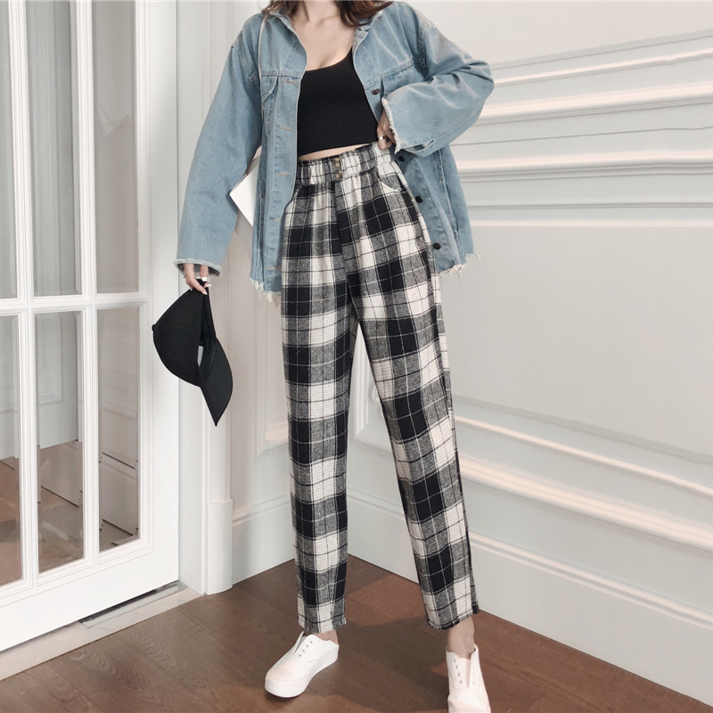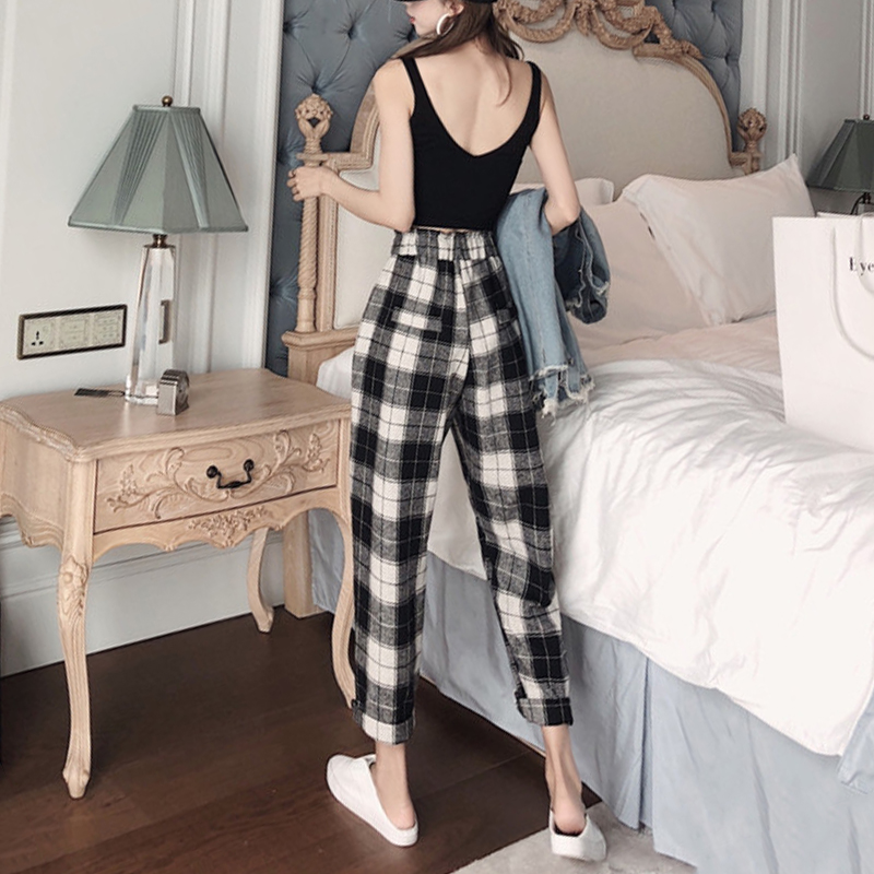 / 復古格子毛呢休閑褲秋裝女2018新款時尚寬松高腰直筒褲潮流長褲子