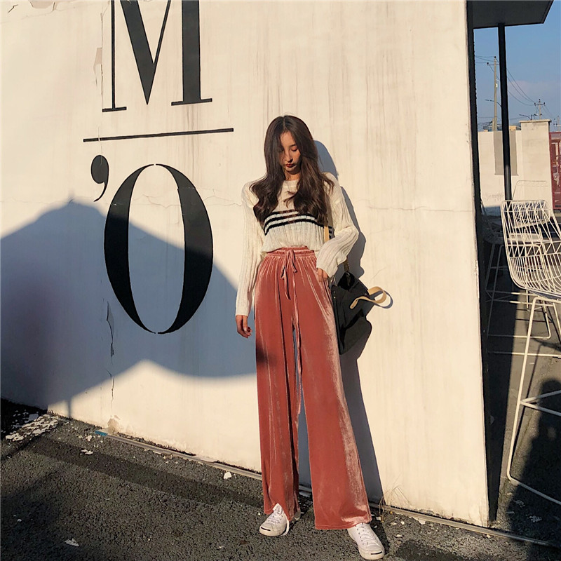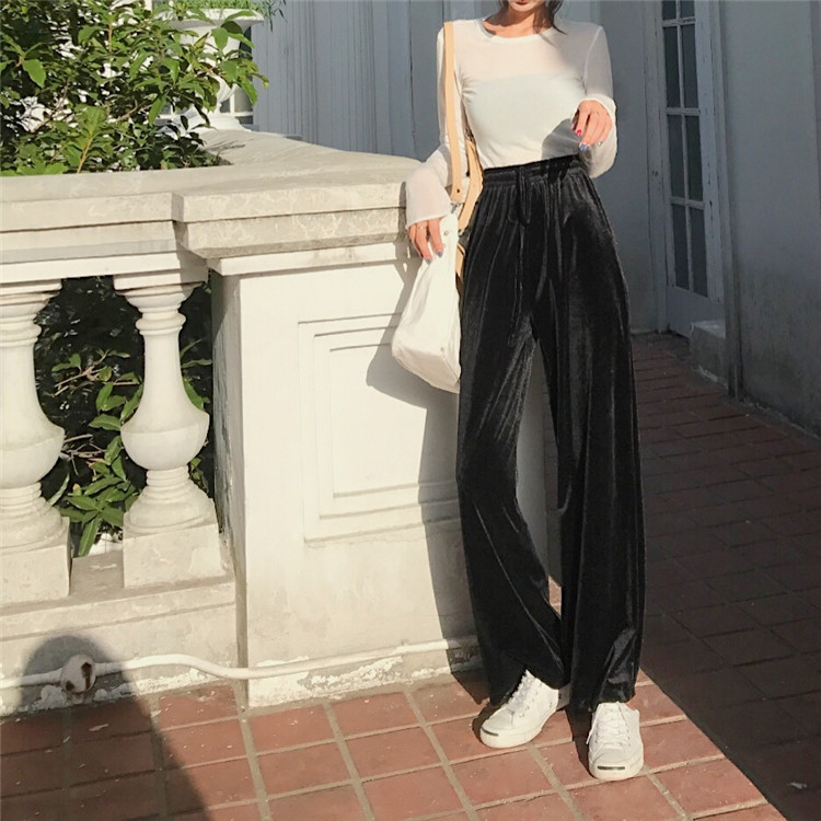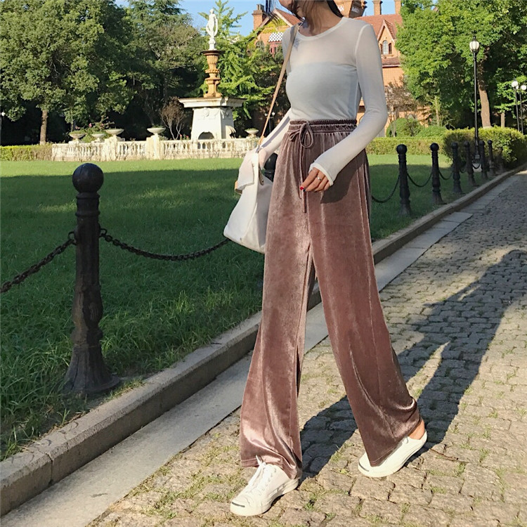 / 褲子2018新款韓版復古百搭時尚氣質chic高腰金絲絨顯瘦闊腿長褲女