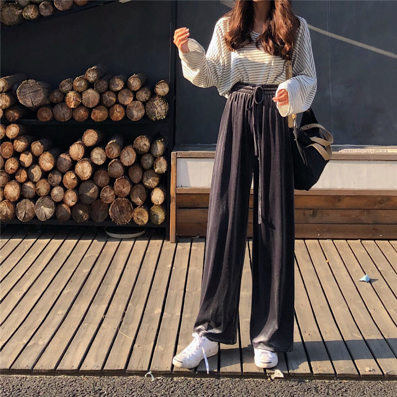 褲子2018新款韓版復古百搭時尚氣質chic高腰金絲絨顯瘦闊腿長褲女