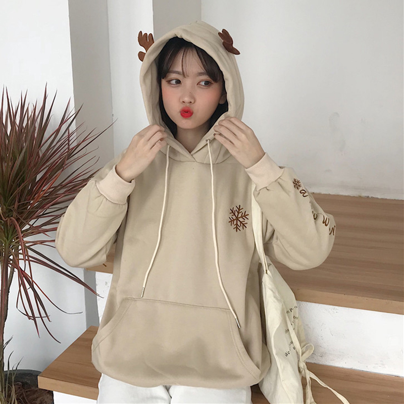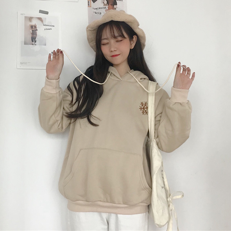 / 可愛少女刺繡寬松加絨衛衣冬裝2018新款學生韓版時尚連帽上衣外套