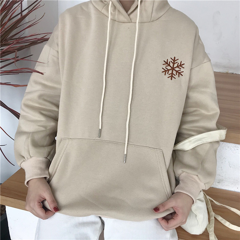 可愛少女刺繡寬松加絨衛衣冬裝2018新款學生韓版時尚連帽上衣外套