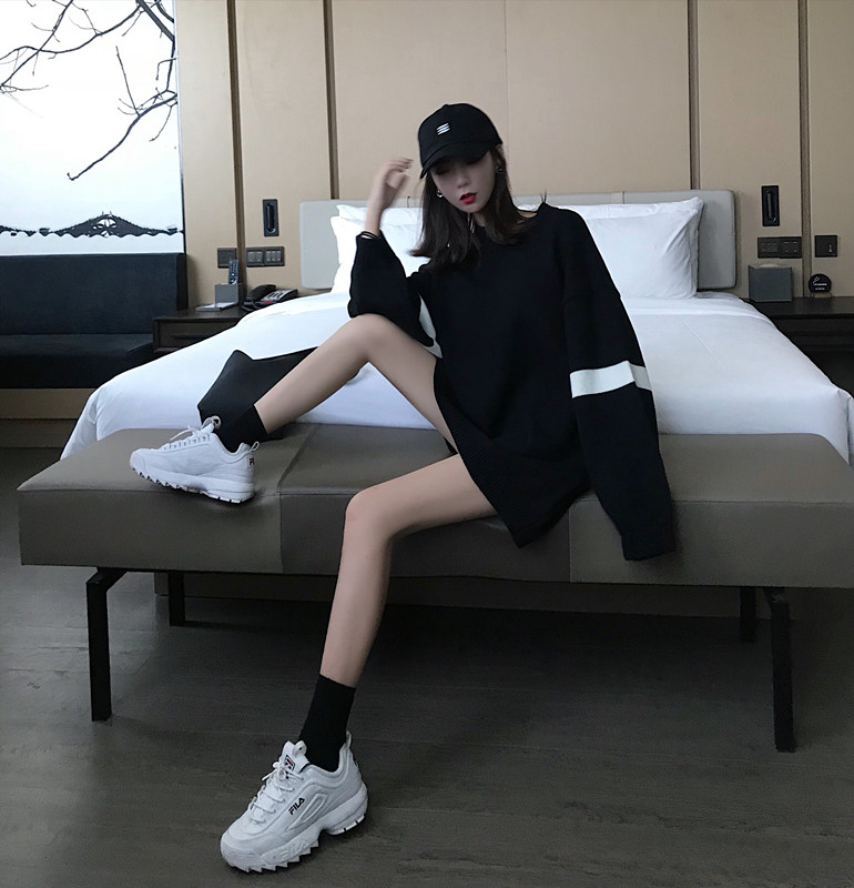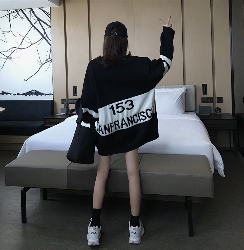 / 小清新時尚新款韓版秋冬百搭復古chic上衣中長款長袖字母寬松毛衣