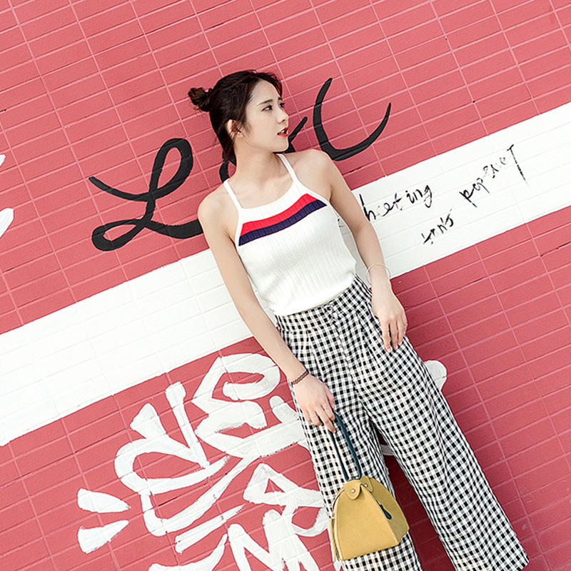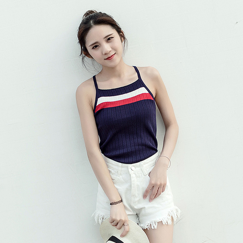 2017夏裝新款女裝吊帶背心女拼色百搭修身顯瘦無袖學生針織上衣潮