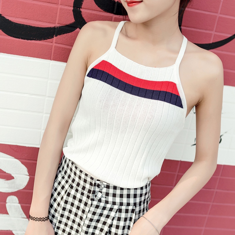 2017夏裝新款韓版女裝無袖針織吊帶背心短款修身綁帶打底衫上衣潮