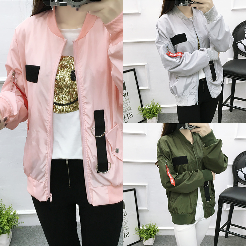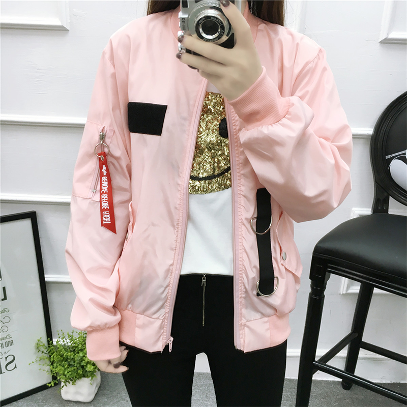 外套女春秋韓版BF2017新款原宿學院風貼布學生牛仔蝙蝠袖棒球服潮