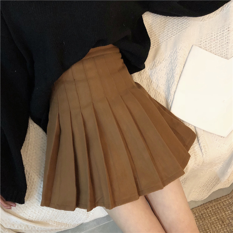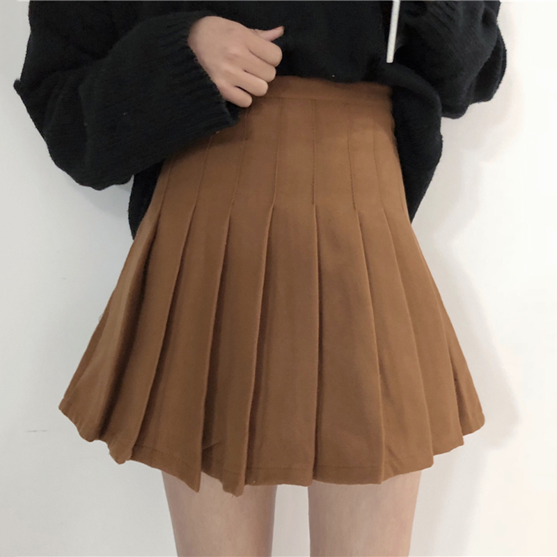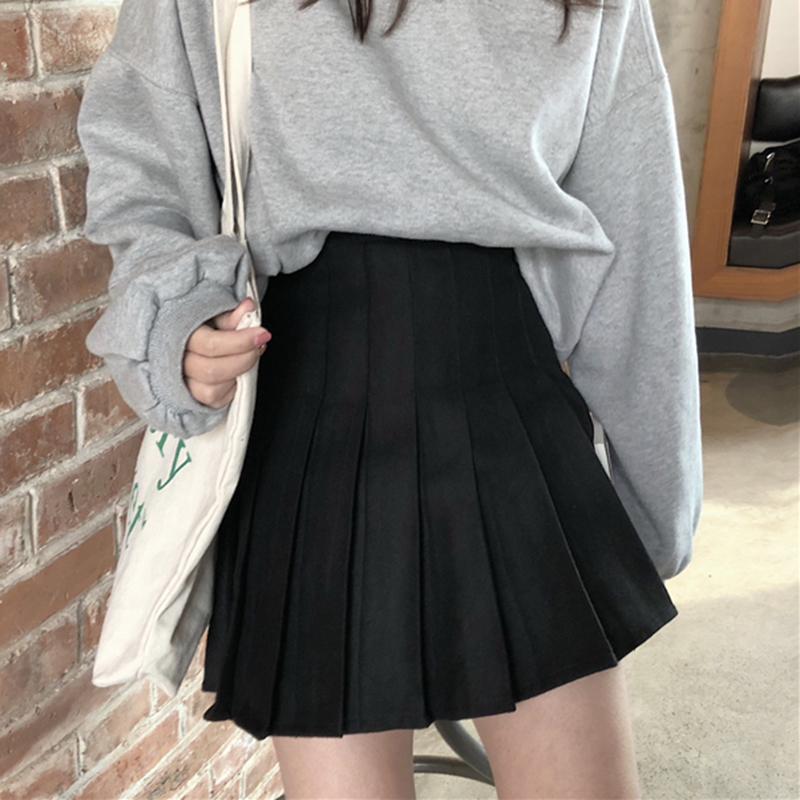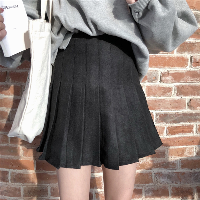 / 高腰顯瘦毛呢百褶裙女秋裝新款日系軟妹A字半身裙學生黑色短裙子