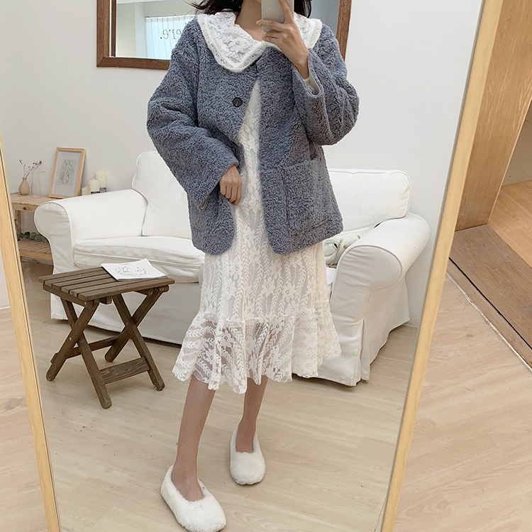 大翻領的連衣裙還可以搭配任何圓領毛衣