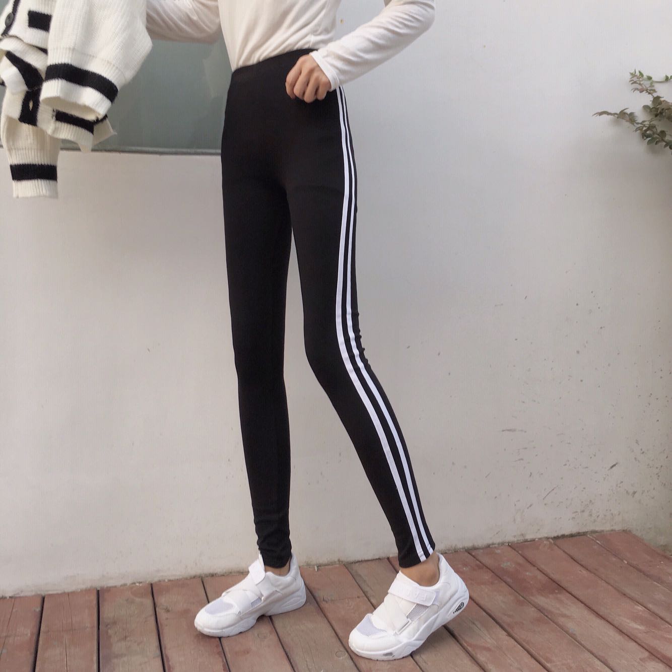 / 外穿打底褲女2018新秋韓版時尚復古氣質百搭彈力雙桿白邊打底長褲