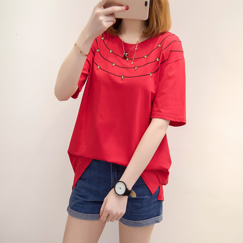 / 女裝夏裝新款潮白色t恤女短袖寬松條紋上衣韓版學生百搭體恤