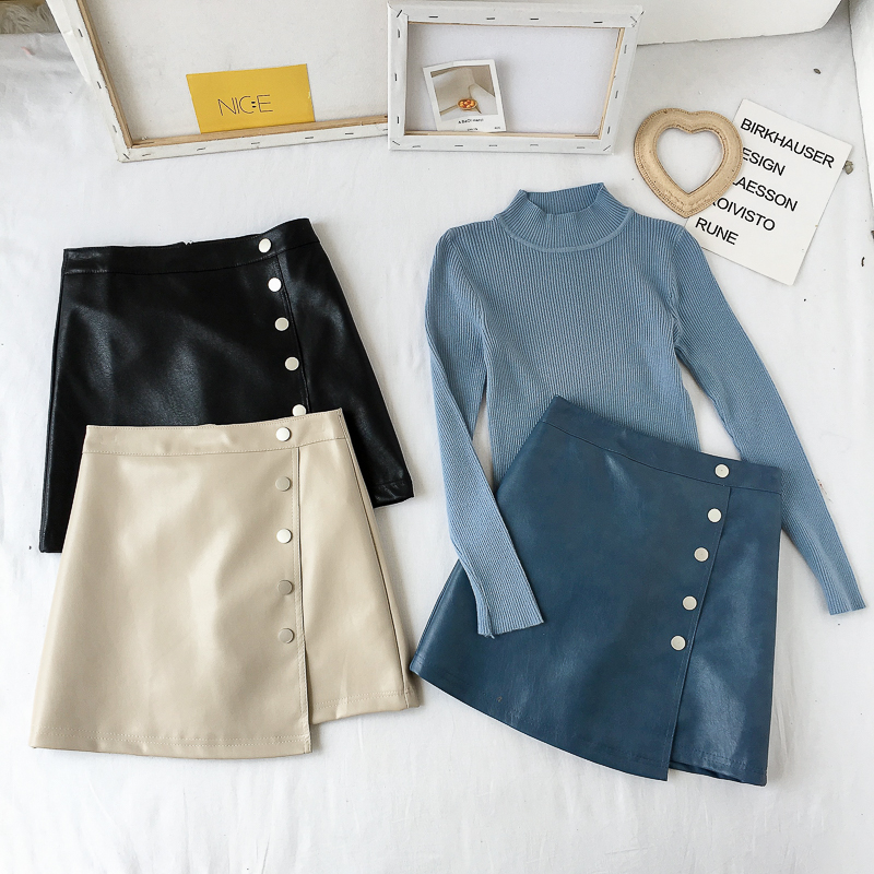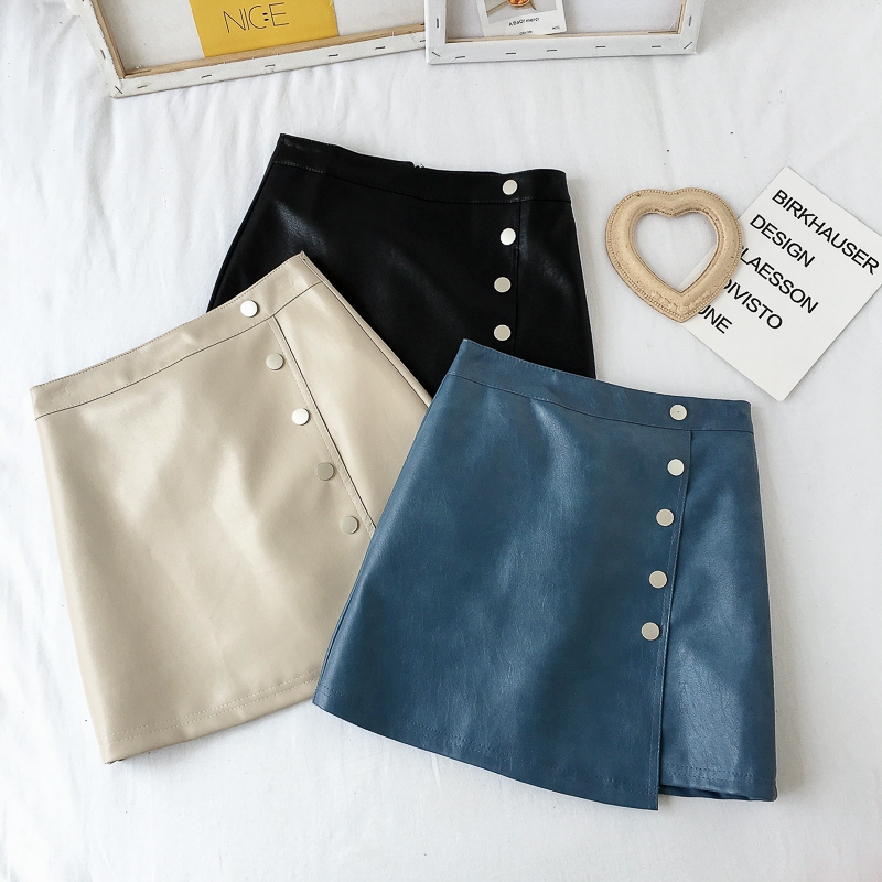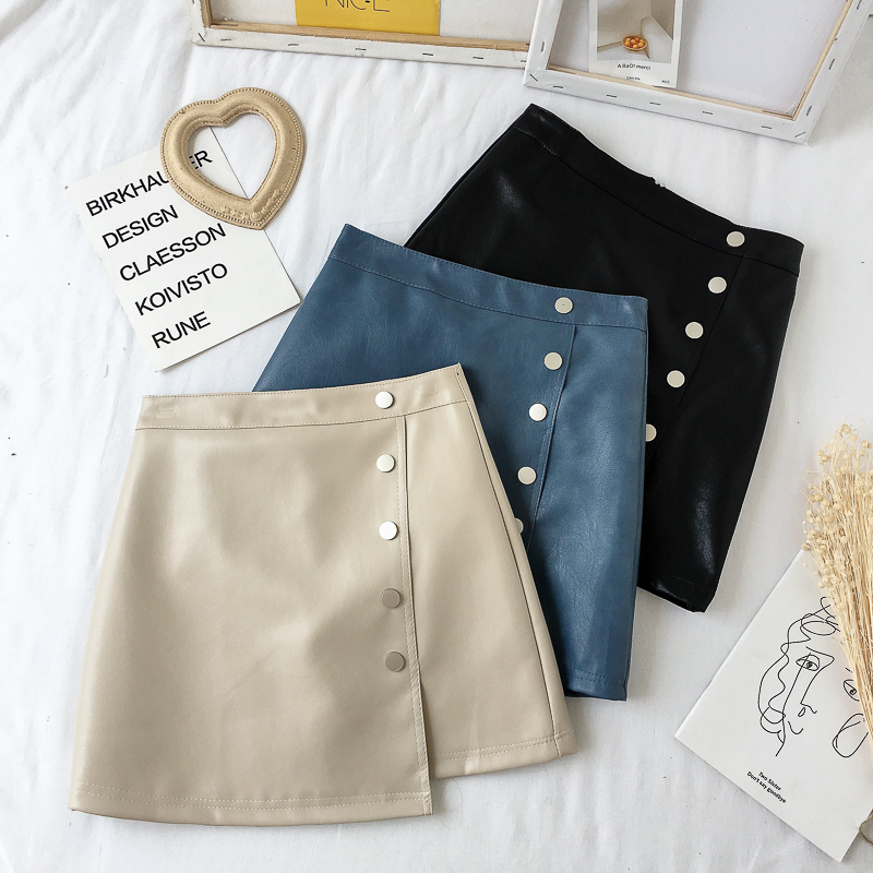 2018秋裝新款高腰裙子韓版百搭防走光不規則皮裙短裙A字半身裙女