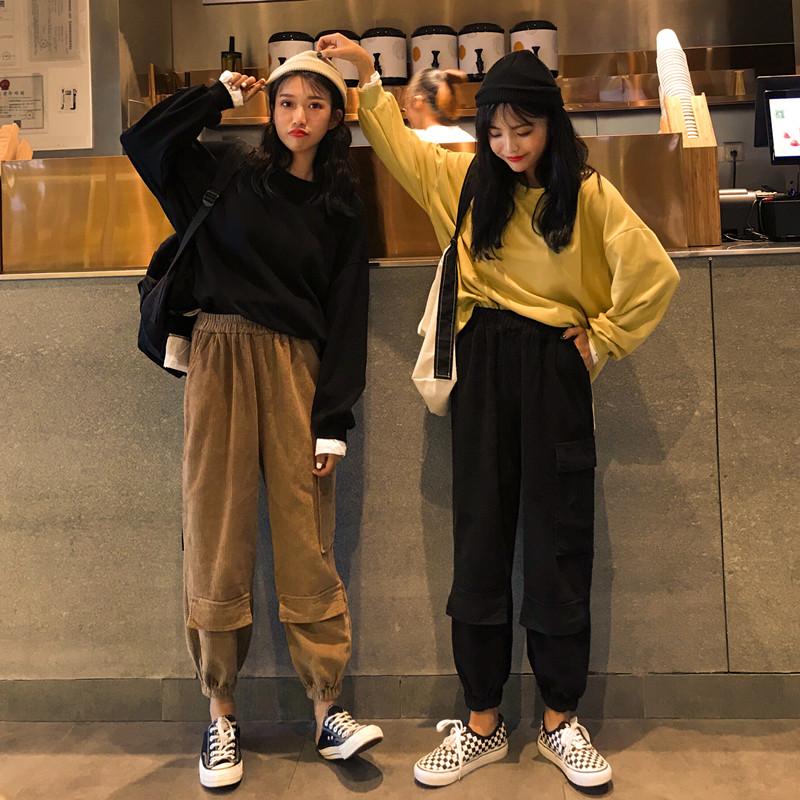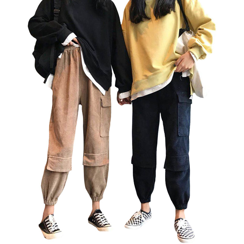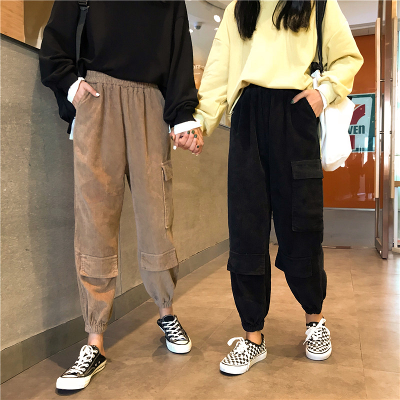 / 秋季女裝韓版復古工裝束腳褲子寬松高腰哈倫褲燈籠褲九分褲休閑褲
