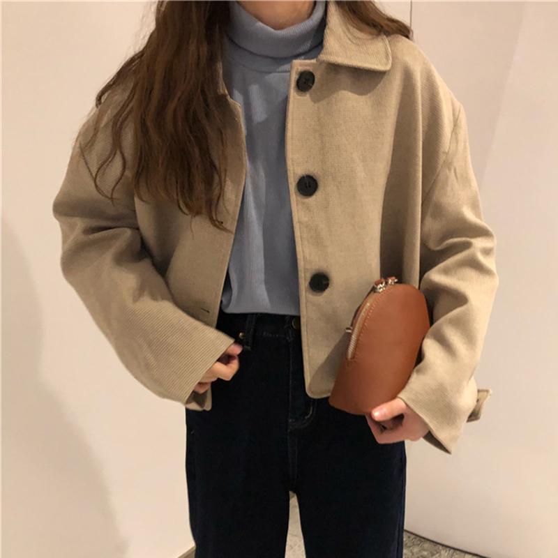 復古翻領短外套秋冬女裝2018新款港風小個子寬松開衫休閑長袖上衣