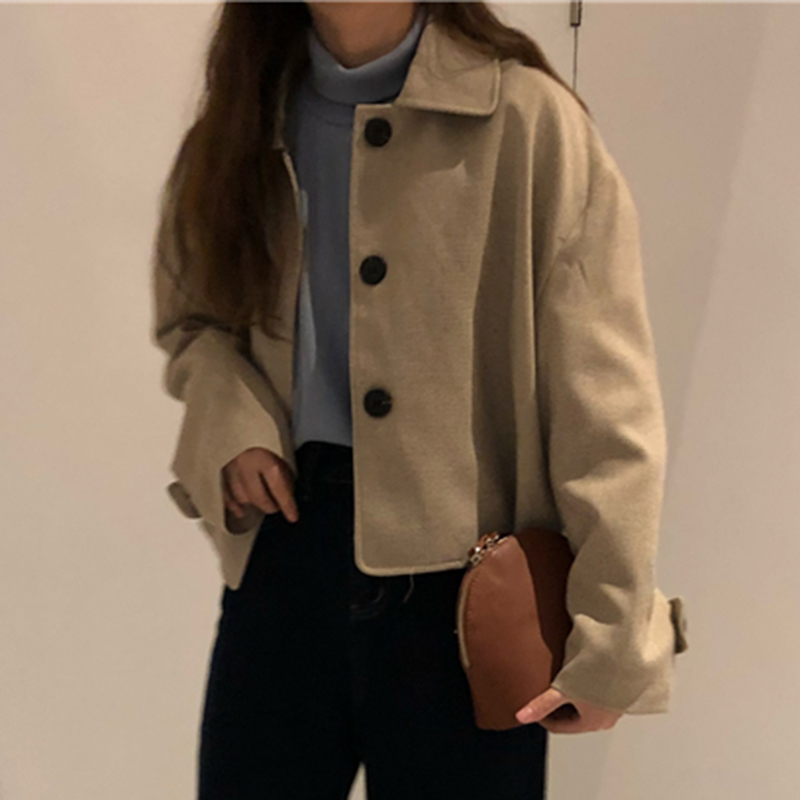 / 復古翻領短外套秋冬女裝2018新款港風小個子寬松開衫休閑長袖上衣