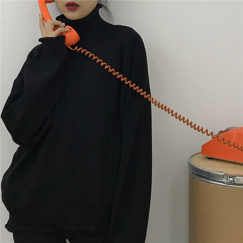 慵懶復古套頭毛衣2018冬裝新款韓版高領花邊寬松長袖針織衫上衣潮