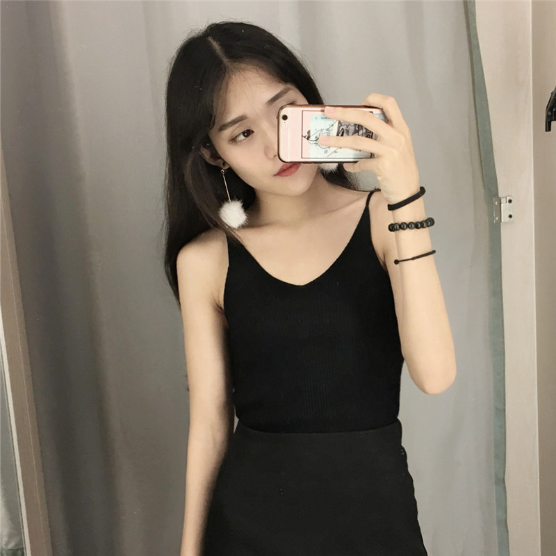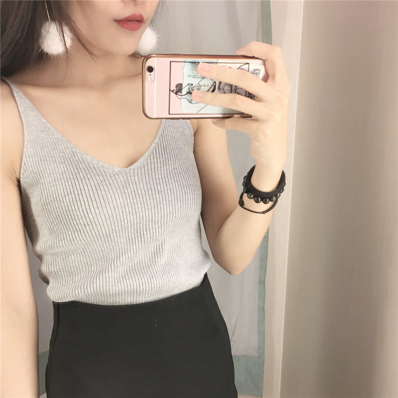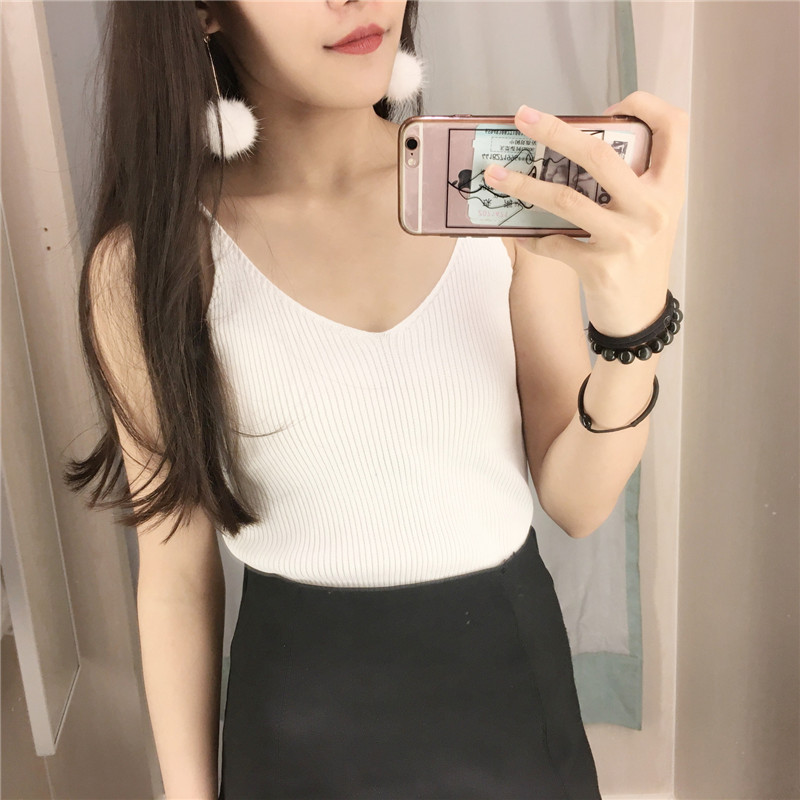 / 春夏新款韓國chil風氣質顯瘦V領針織吊帶小背心百搭學生打底衫女