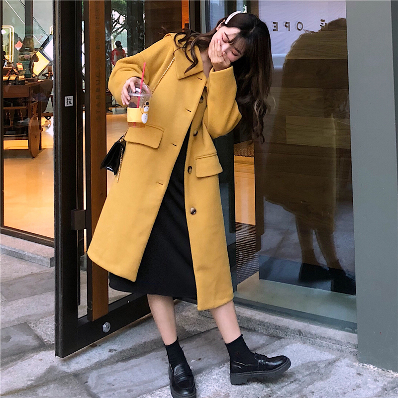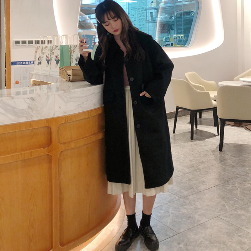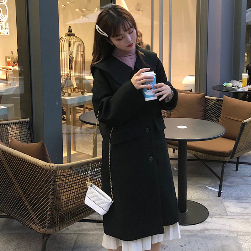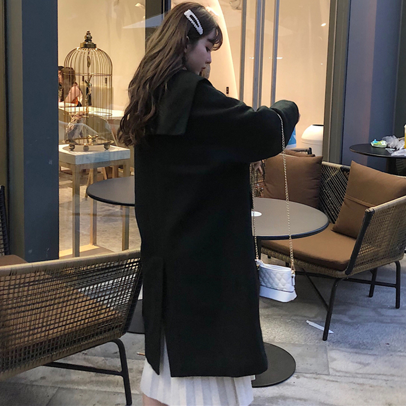 2018流行加厚毛呢外套女秋冬裝新款黑色呢子大衣寬松開衫學生上衣