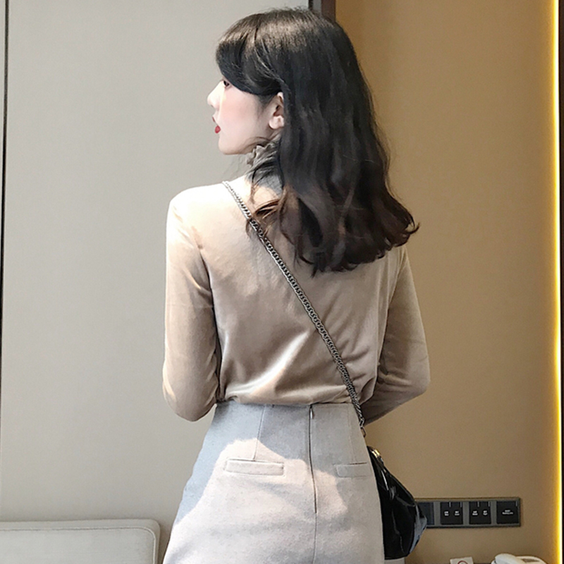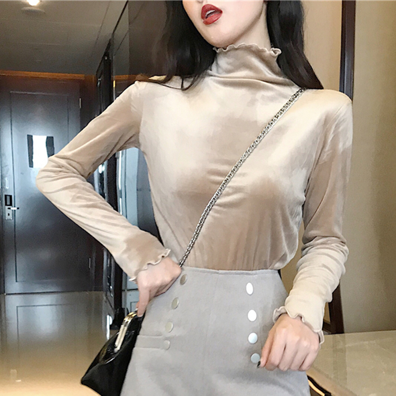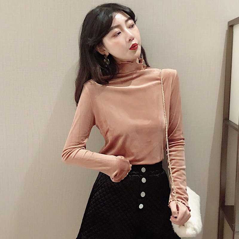 / 高領修身顯瘦打底衫女秋冬裝新款復古絲絨長袖上衣時尚黑色T恤潮