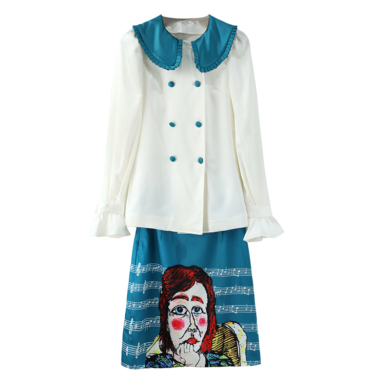 名媛氣質高腰中裙套裝包臀女2018秋新款顯瘦時尚半身裙襯衫兩件套