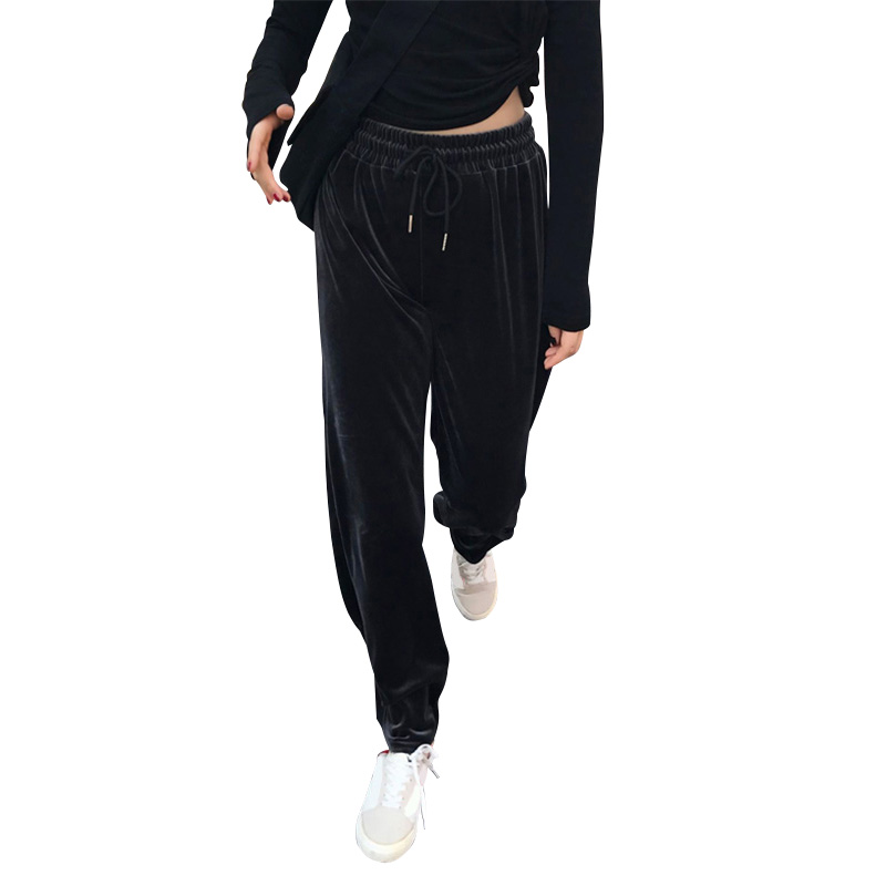 / 韓版新款褲子女秋冬百搭時尚chic絲絨垂順感直筒拖地長褲休閑褲女