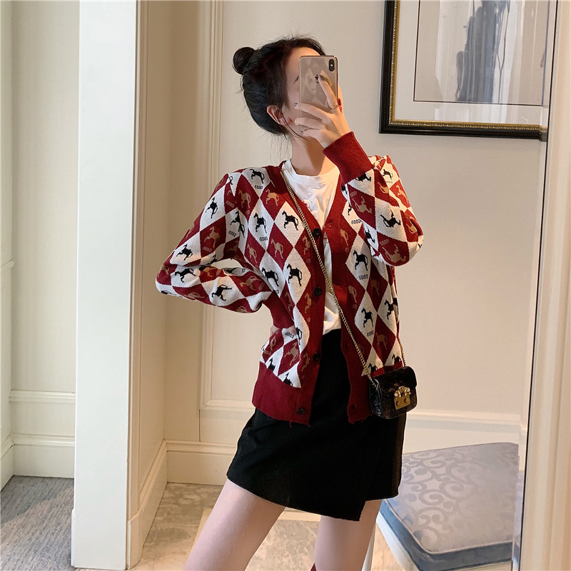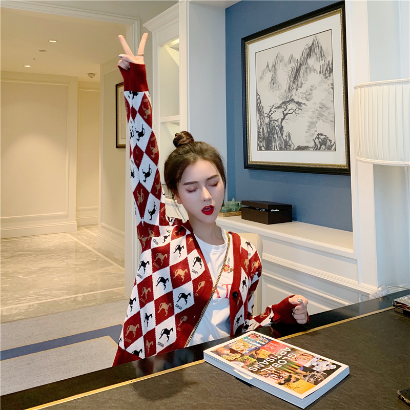 / 初秋溫柔風毛衣格子毛針織衫女秋裝上衣學院風chic網紅毛衣外套潮