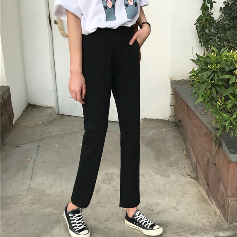 秋裝女裝韓版高腰寬松學生休閑直筒九分褲顯瘦黑色牛仔褲闊腿長褲