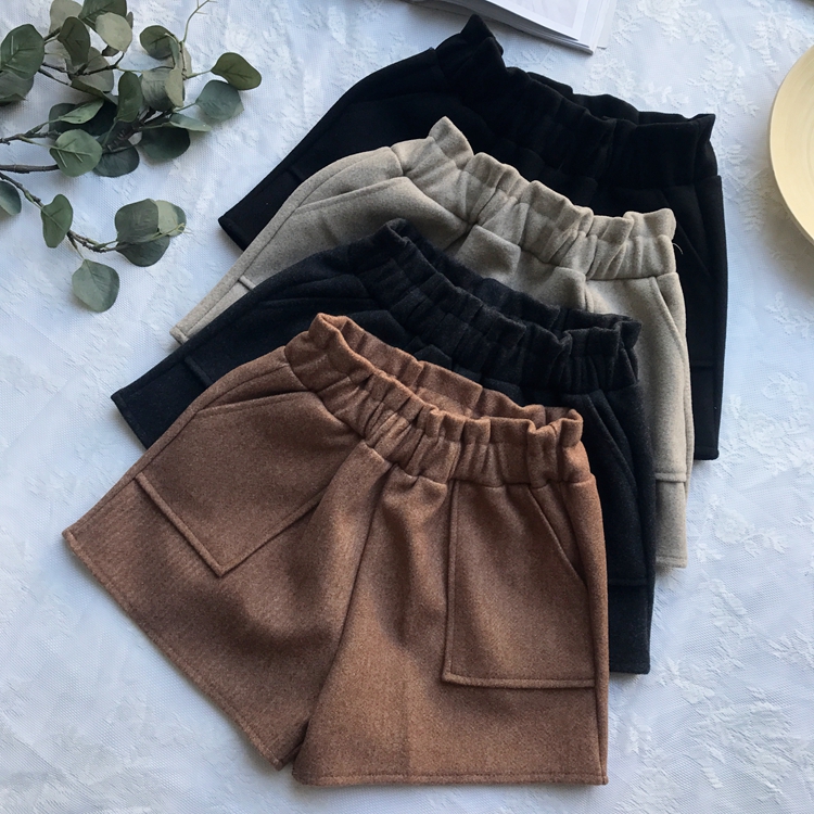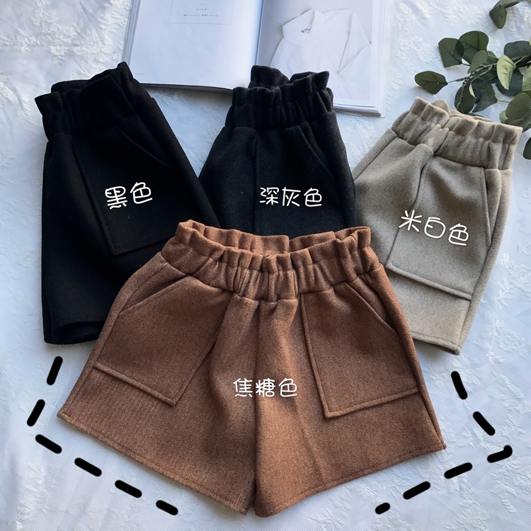 2018秋冬新款chic褲子韓版高腰顯瘦闊腿褲百搭直筒毛呢休閑短褲女