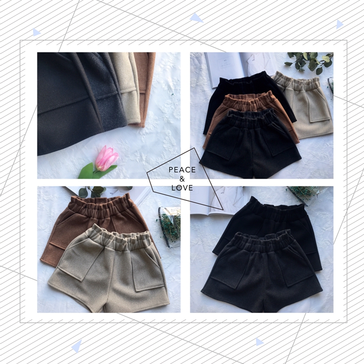 / 2018秋冬新款chic褲子韓版高腰顯瘦闊腿褲百搭直筒毛呢休閑短褲女