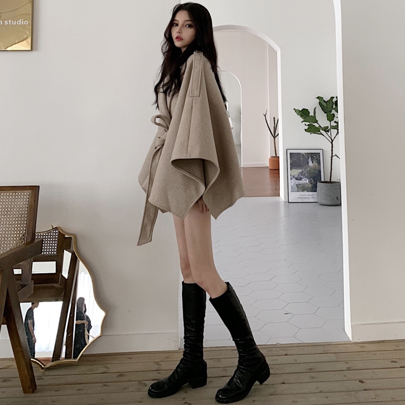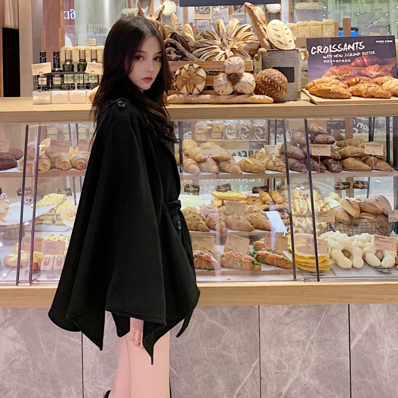 chic外套女秋冬2018新款韓版百搭款收腰顯瘦毛呢外套呢子斗篷大衣