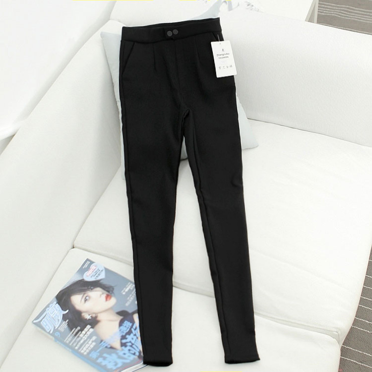 / 冬款韓版彈力顯瘦小腳褲女加絨打底褲外穿加厚黑色鉛筆褲長褲
