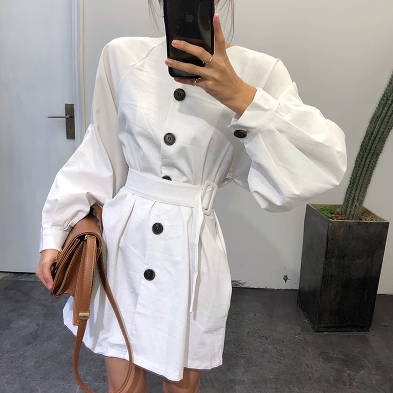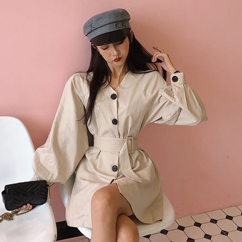 / 收腰顯瘦寬松長袖風衣女秋冬裝新款中長款白色開衫學生時尚外套潮