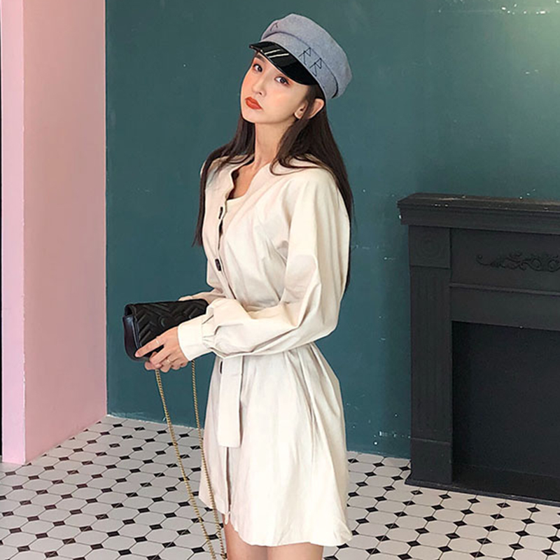 收腰顯瘦寬松長袖風衣女秋冬裝新款中長款白色開衫學生時尚外套潮