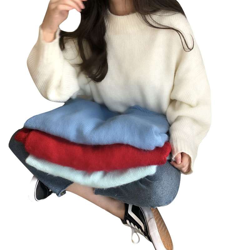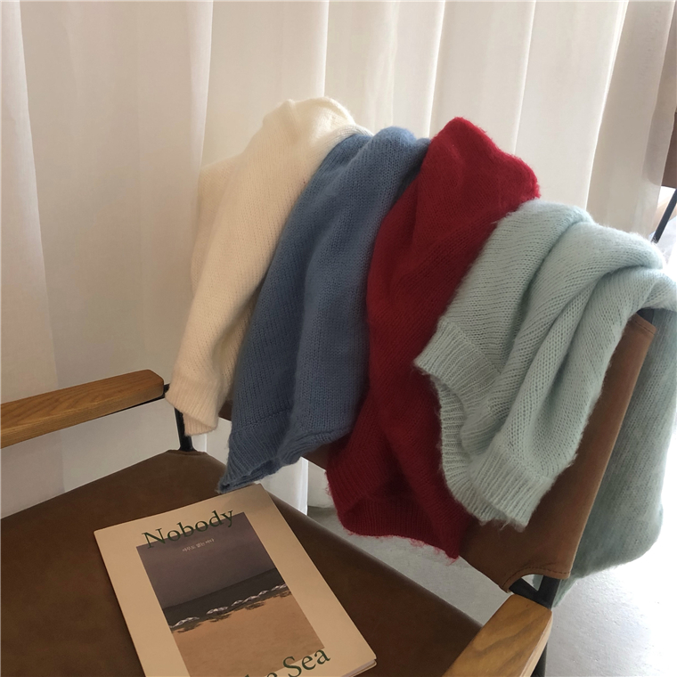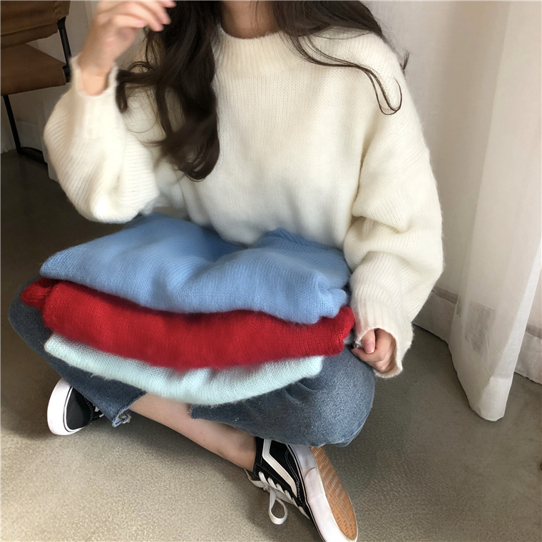 / 秋冬女裝韓版糖果色慵懶風寬松馬海毛網紅套頭毛衣針織衫上衣外套