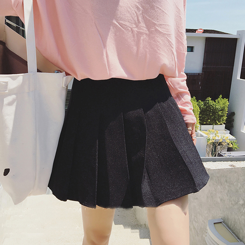 / 韓版春夏女裝高腰顯瘦a字裙百褶裙防走光半身裙小黑裙子學生短裙