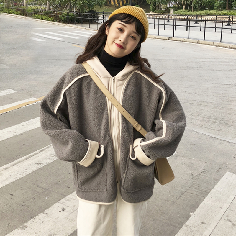 / chic學院風羊羔毛外套女秋冬裝2018新款韓版寬松長袖連帽棉衣服潮