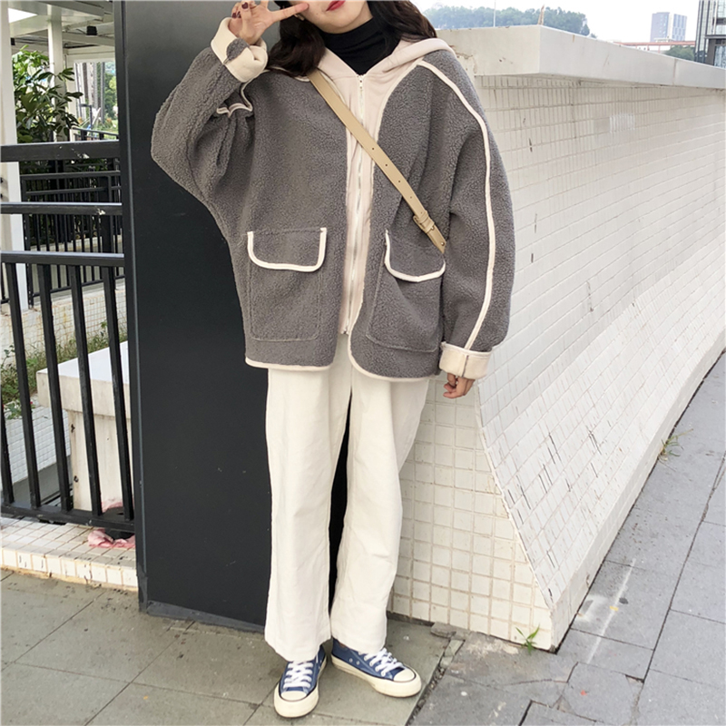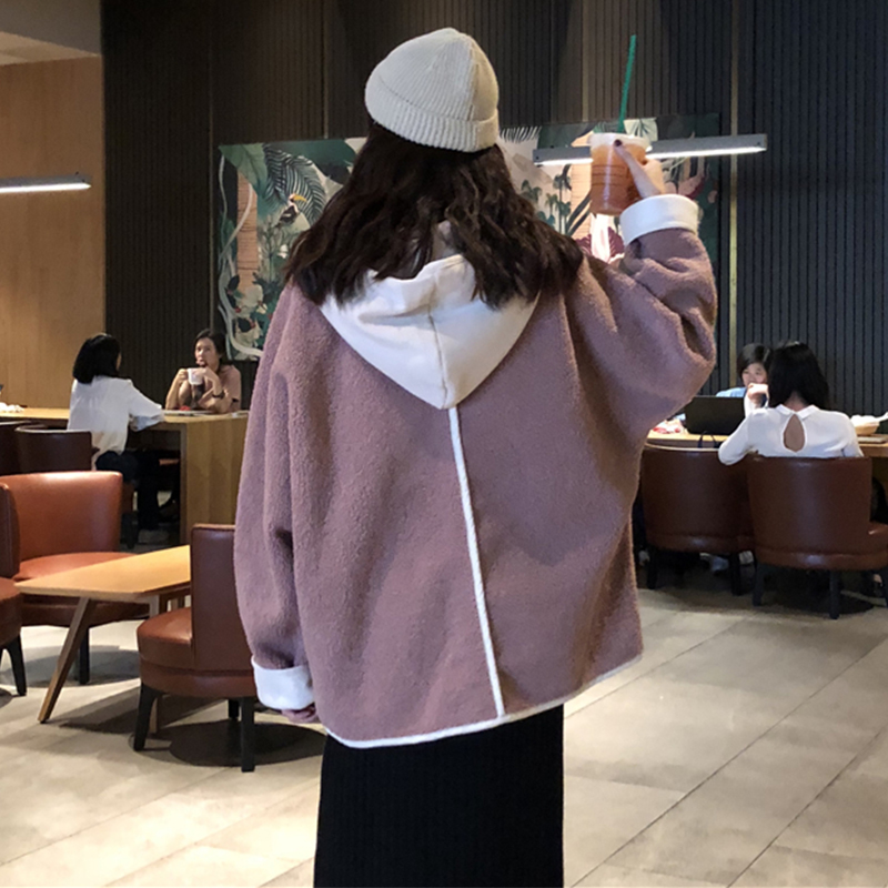 chic學院風羊羔毛外套女秋冬裝2018新款韓版寬松長袖連帽棉衣服潮