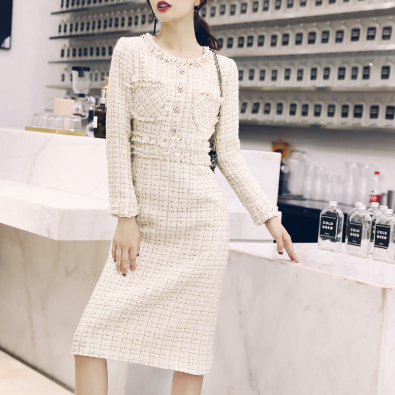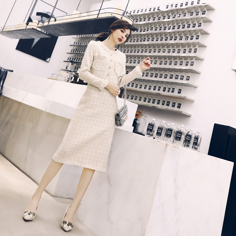/ 2018冬季新款網紅女裝時尚編織毛呢裙子女神成熟氣質洋氣連衣裙