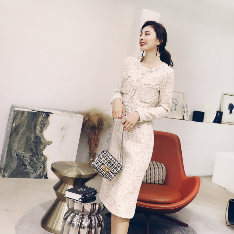 2018冬季新款網紅女裝時尚編織毛呢裙子女神成熟氣質洋氣連衣裙