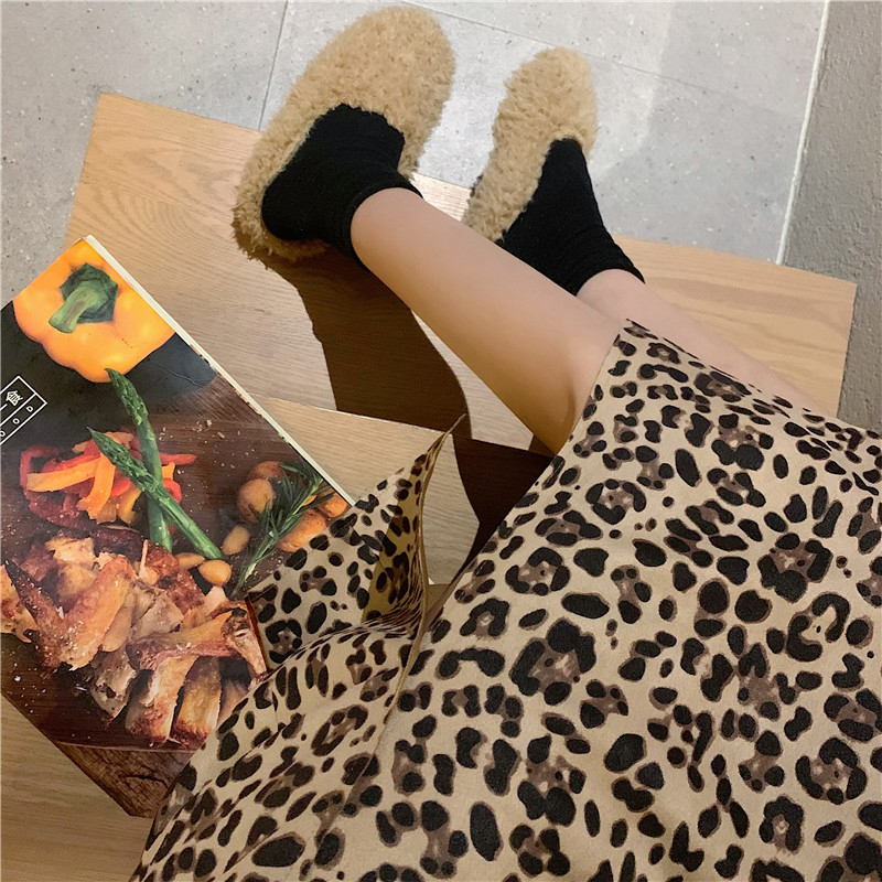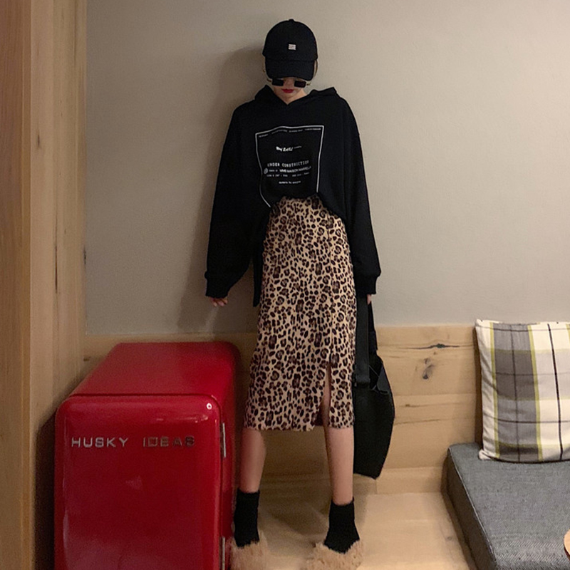 / 套裝女秋冬2018新款寬松長袖外套加絨時尚衛衣高腰開叉豹紋半身裙