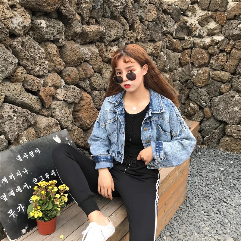/ 秋裝女裝韓版復古做舊牛仔外套短款百搭寬松bf風長袖夾克開衫上衣