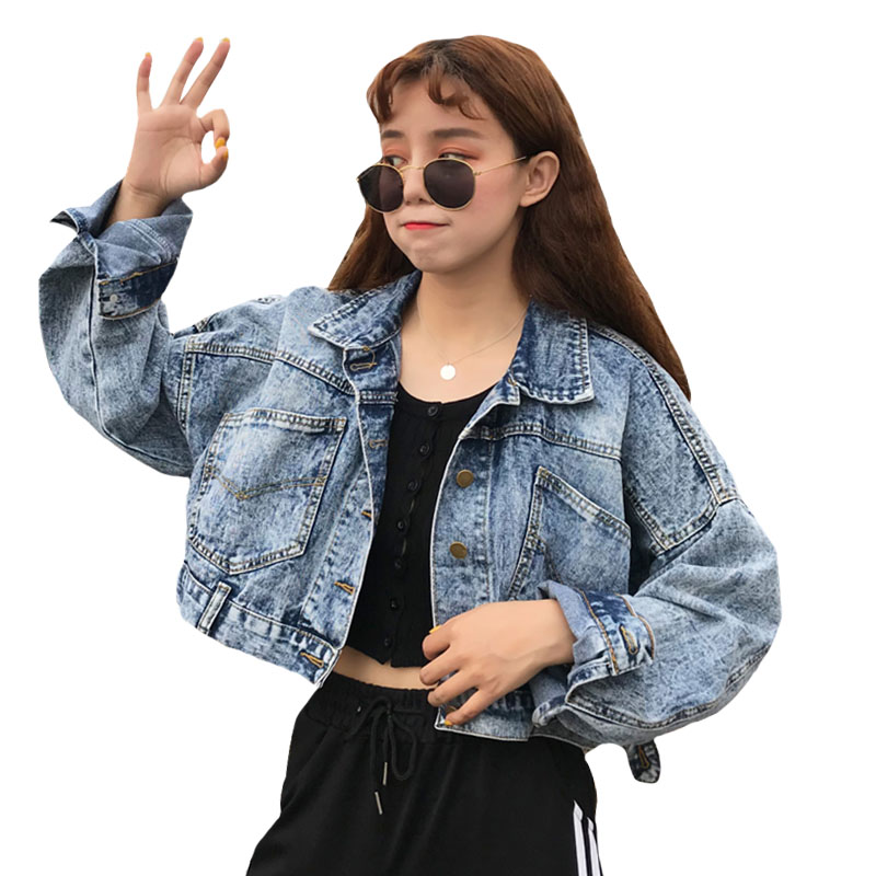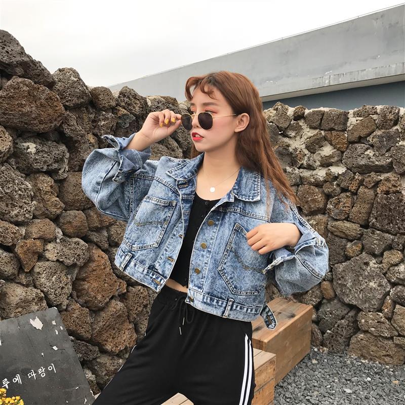 秋裝女裝韓版復古做舊牛仔外套短款百搭寬松bf風長袖夾克開衫上衣