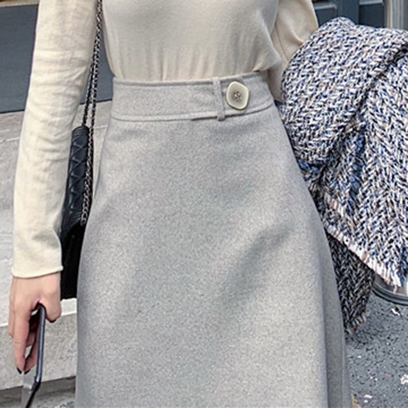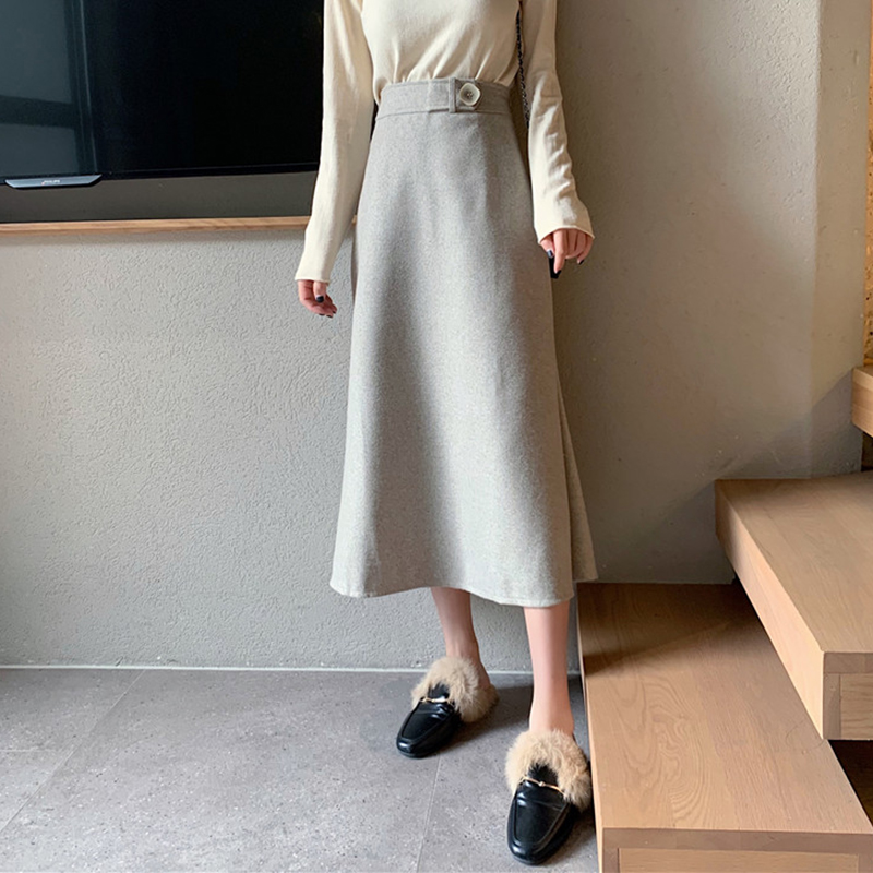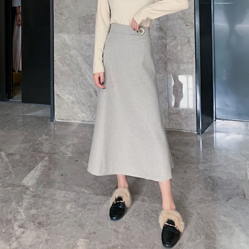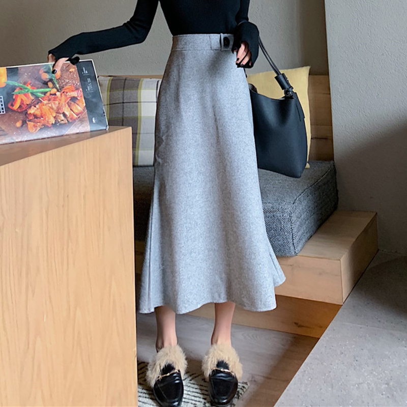 / 復古風高腰顯瘦魚尾半身裙子女秋冬裝新款韓版學生灰色A字中長裙
