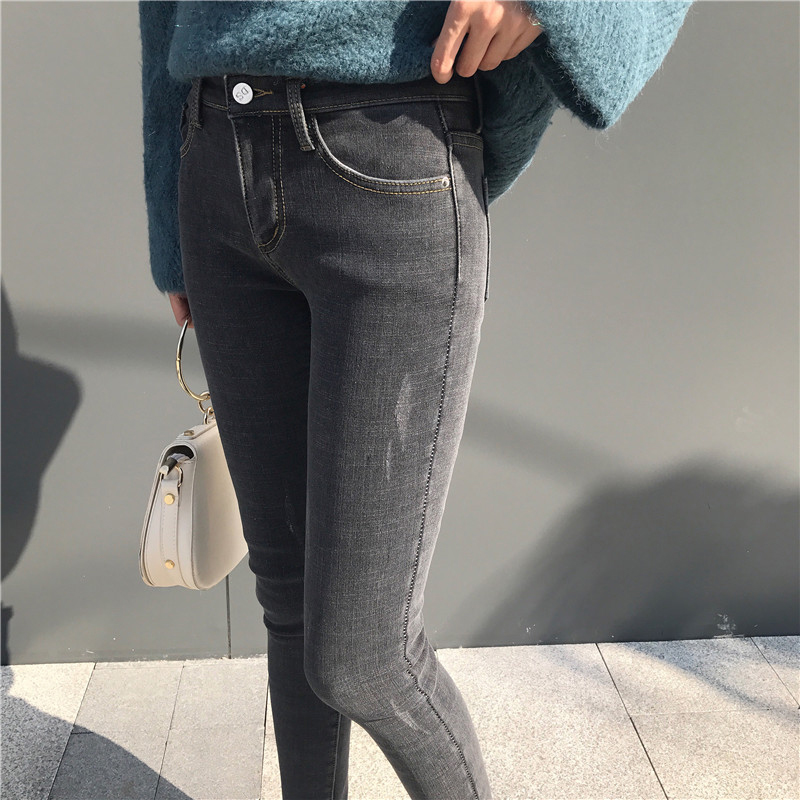 / 牛仔褲秋冬女2018新款顯瘦加厚保暖緊身小腳鉛筆褲修身高腰長褲子