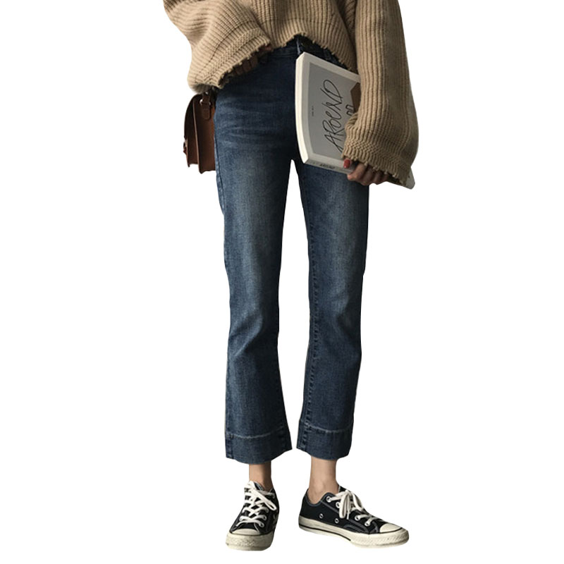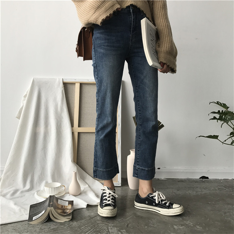 秋裝韓版水洗復古寬松百搭牛仔褲學生褲子高腰顯瘦直筒褲九分褲女