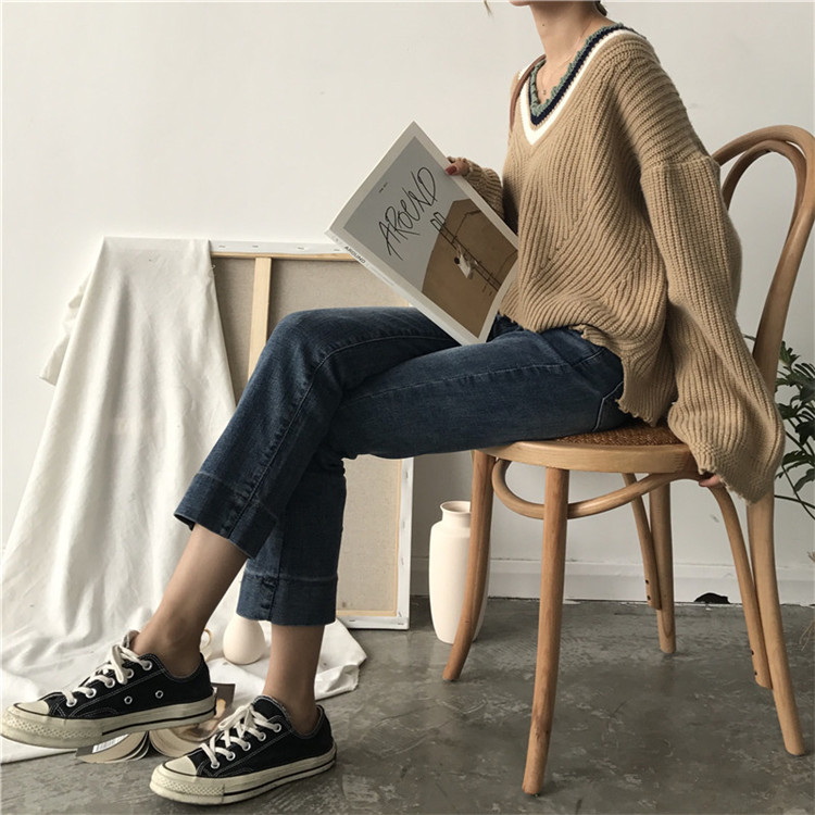 / 秋裝韓版水洗復古寬松百搭牛仔褲學生褲子高腰顯瘦直筒褲九分褲女