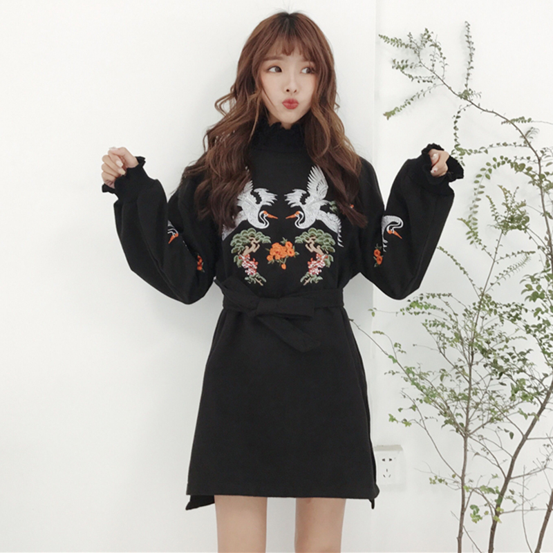 / 慵懶風上衣女長袖秋冬裝2018新款韓版寬松呢子外套刺繡高領衛衣潮
