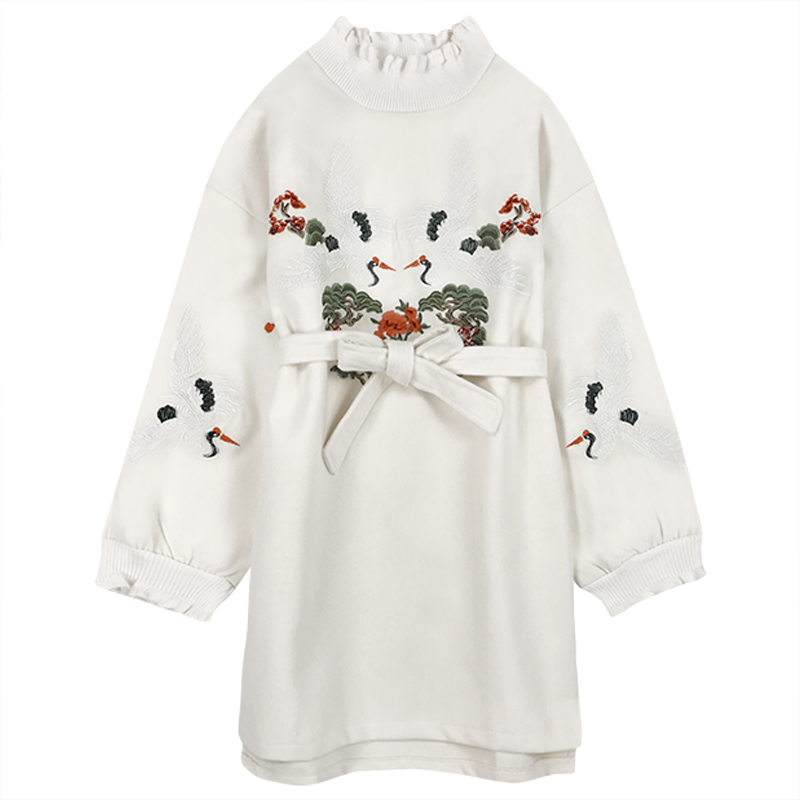 慵懶風上衣女長袖秋冬裝2018新款韓版寬松呢子外套刺繡高領衛衣潮
