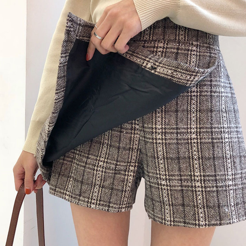 秋裝女2018新款韓版高腰顯瘦不規則格紋半身裙褲子學生復古短褲裙